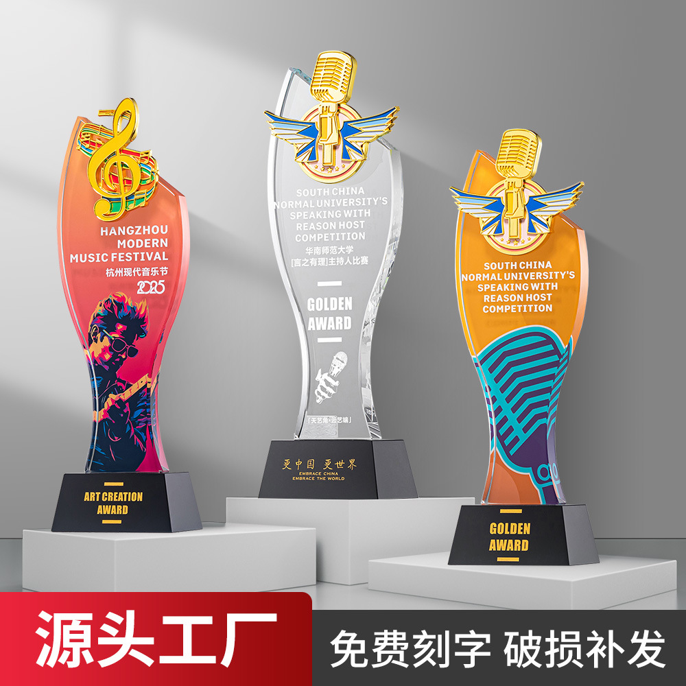 水晶奖杯定制音乐节唱歌跳舞活动主持演讲比赛麦克风话筒高档奖杯