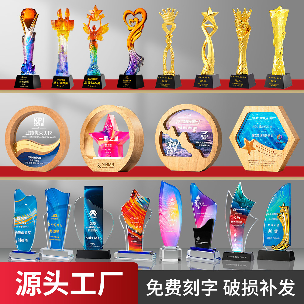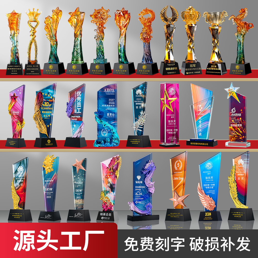 琉璃水晶奖杯定制炫彩发光企业优秀员工年会颁奖体育赛事纪念礼品