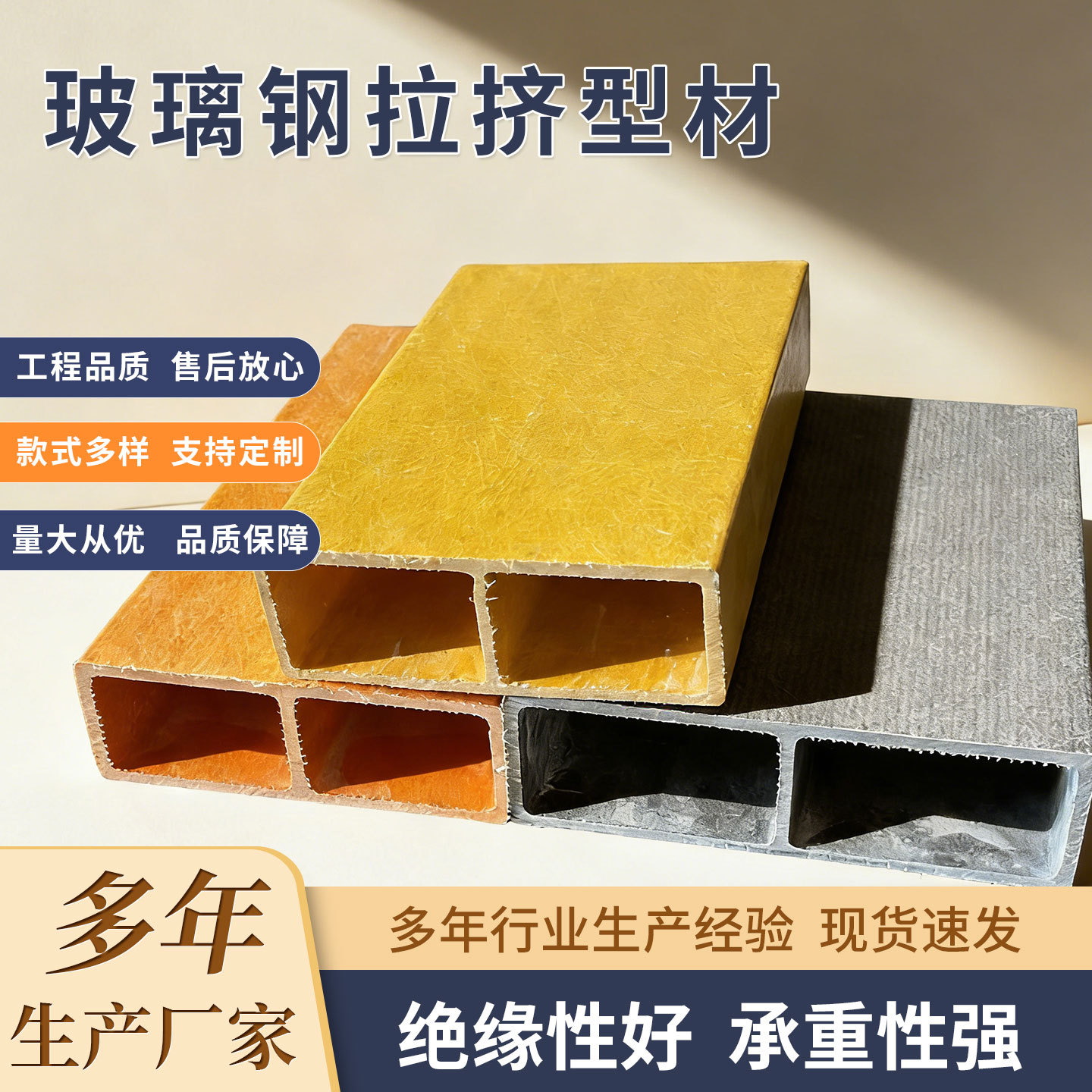 玻璃钢方管绝缘防腐蚀角钢工字钢拉挤型材房屋建筑支撑玻璃钢方管