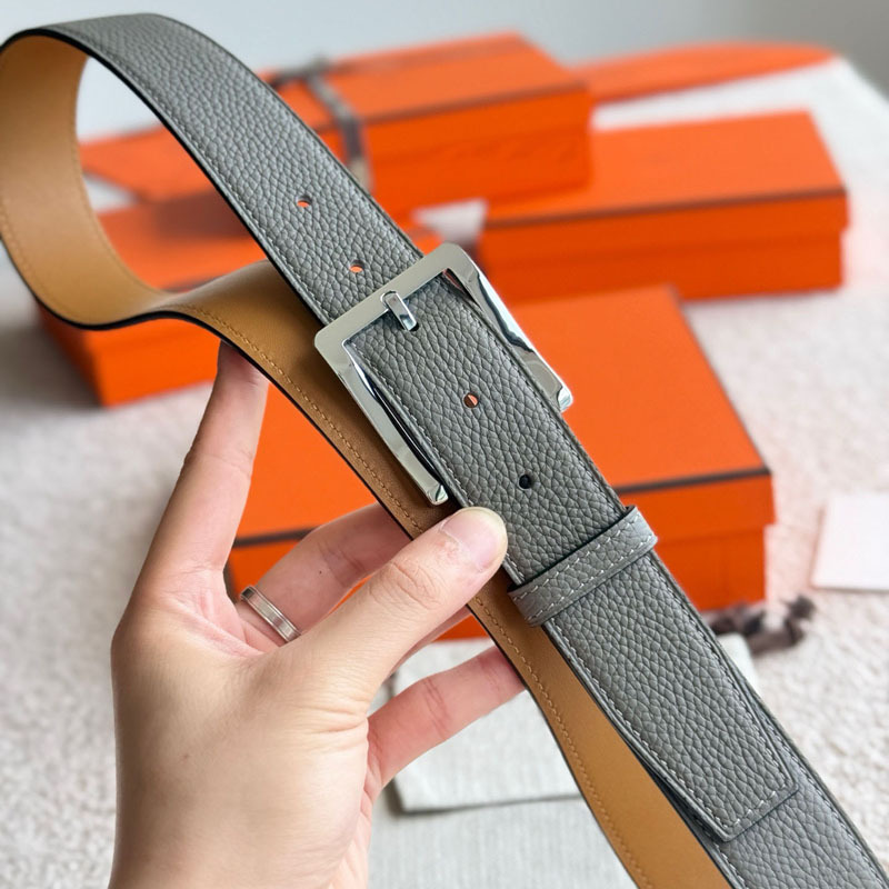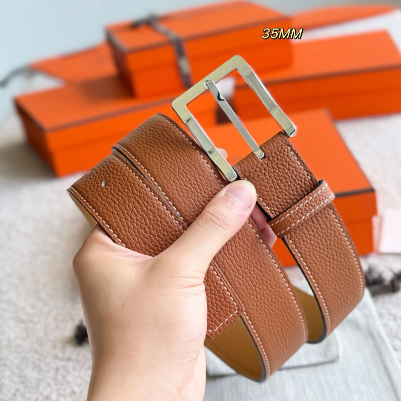 H家新款头层牛皮荔枝纹真皮男腰带时尚皮带牛仔裤带亮银金扣35mm