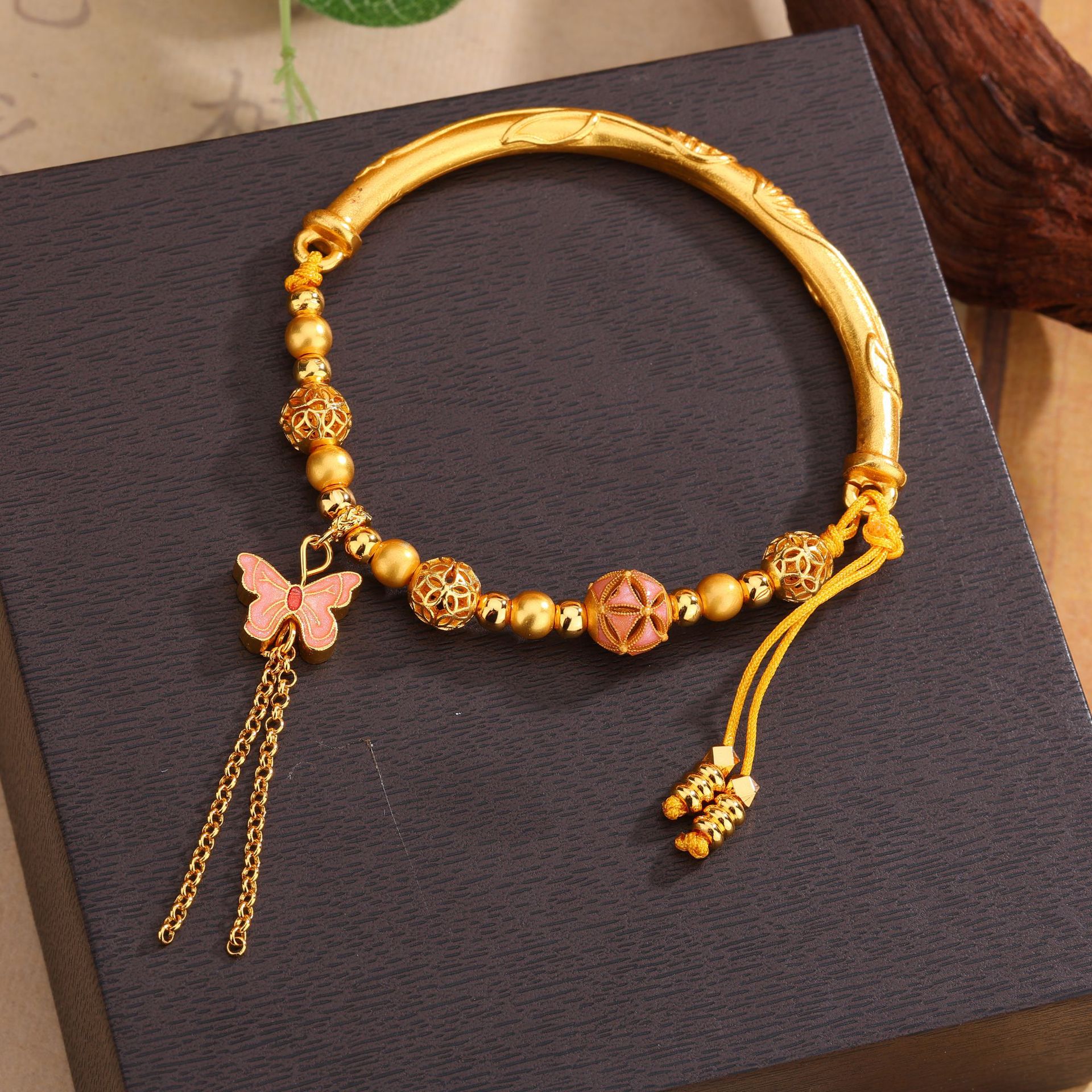久不掉色越南沙金超仙~闭眼入蝴蝶半镯手链女ins小众设计气质手镯