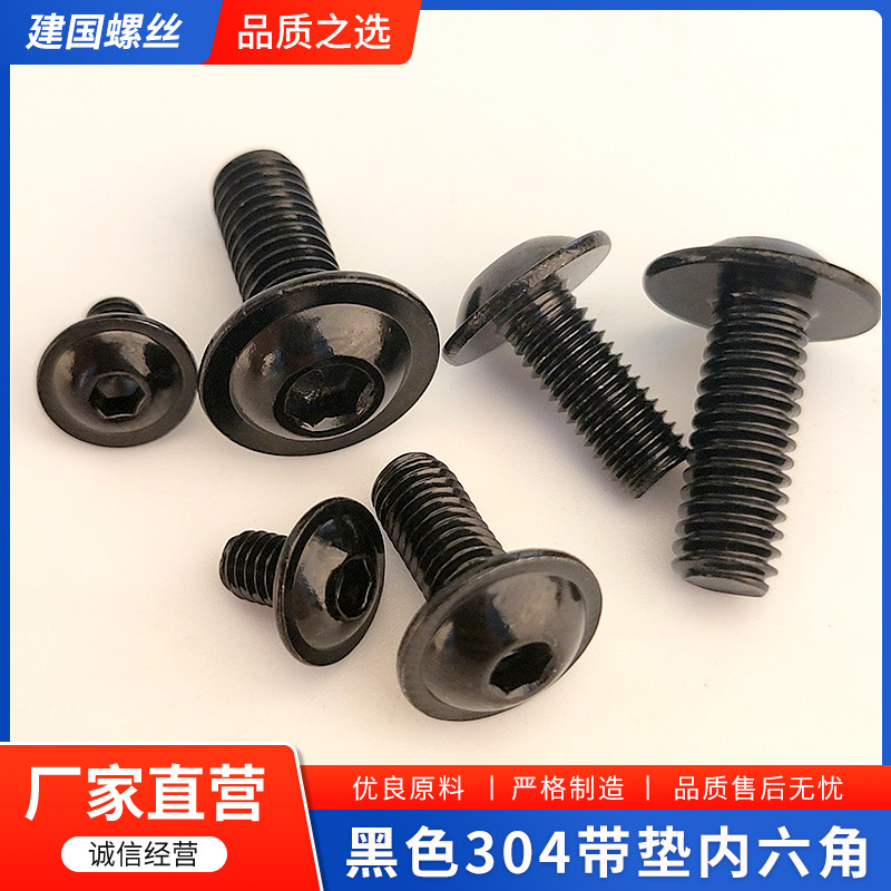 黑色304带垫内六角标准螺纹PW M5*10 12 16 M4带垫园杯过盐雾耐磨