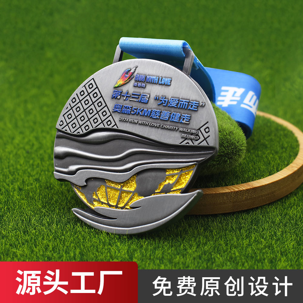 慈善健走赛事金属奖牌定制第13届为爱而走马拉松荣誉奖牌高端大气