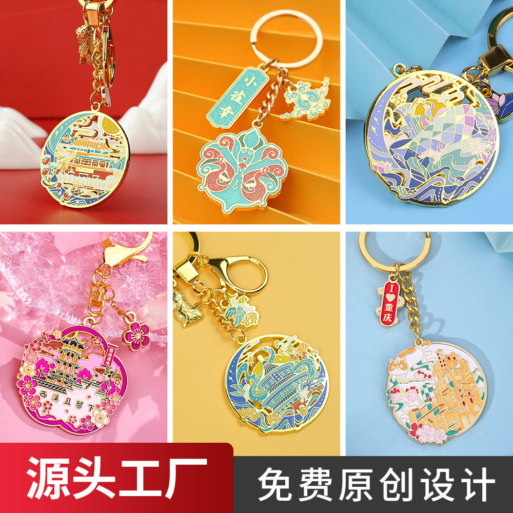 金属钥匙扣定制旅游城市IP景区国潮文创纪念礼品镂空珐琅工艺设计
