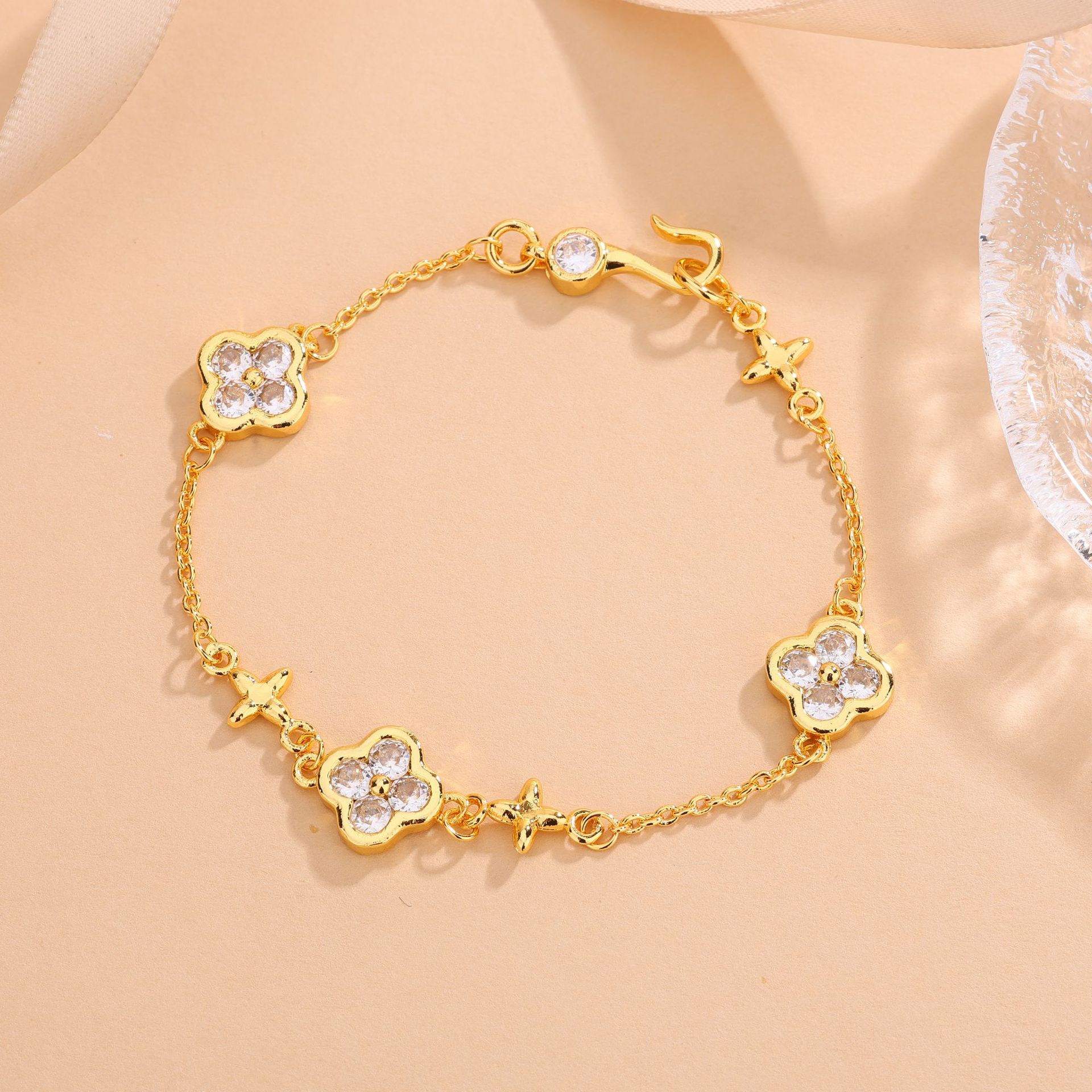 18k高版本v金双面三花四叶草手链幸运草白贝母花朵不掉色手饰品