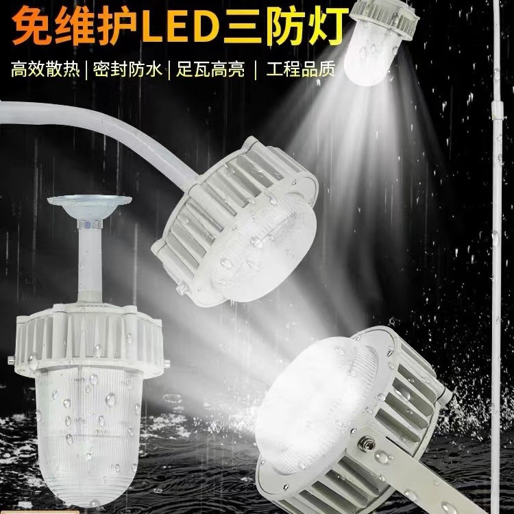 LED三防灯50w70W100w厂房仓库车间工业照明灯弯杆式壁装平台灯
