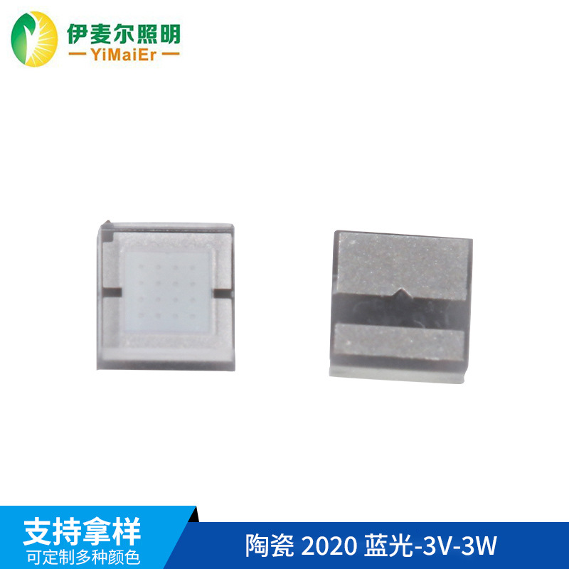 陶瓷2020蓝光 led灯珠贴片平面灯珠 3V-3W 配件垂直车灯贴片灯珠