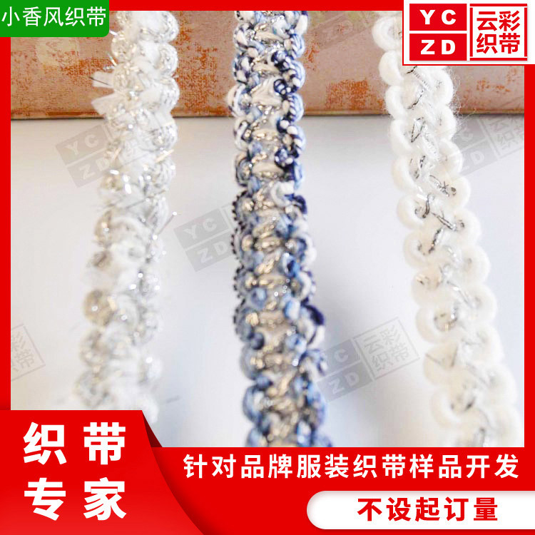 制定1-6cm涤棉手工编织同款时尚服饰辅料金银丝小香风织带