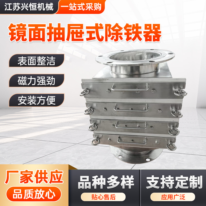 镜面抽屉式除铁器食品粉料颗粒物注塑机料斗磁力架磁性过滤管道除