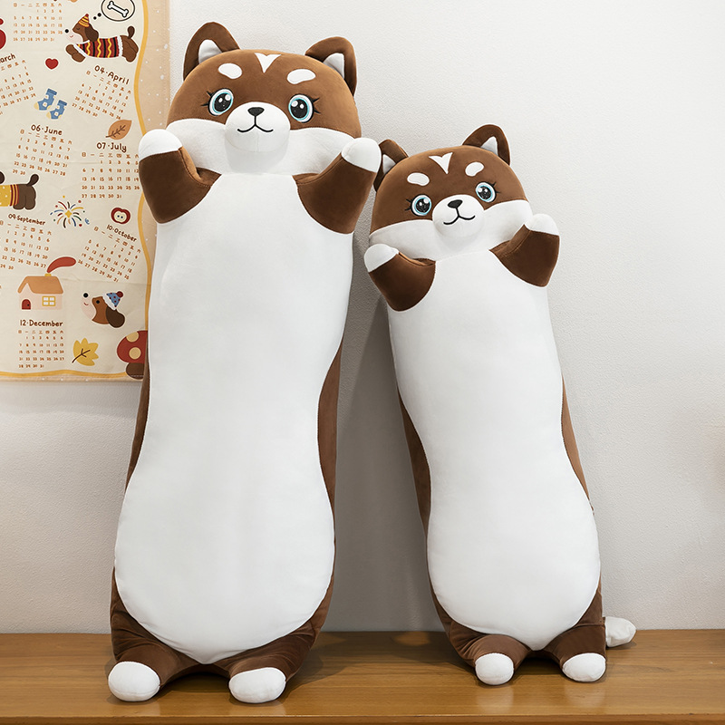 哈士奇长条抱枕毛绒公仔卡通羽绒棉抱枕柴犬公仔睡觉抱枕夹腿娃娃