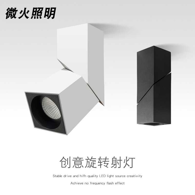 创意led明装射灯可调角度方形客厅卧室无主灯服装店cob聚光轨道灯