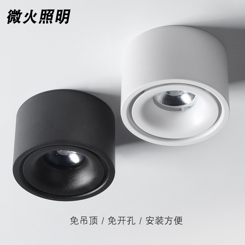 超薄明装射灯免开孔家用客厅圆形led筒灯全铝吸顶无主灯中山批发