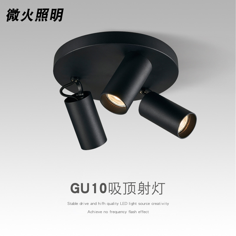 圆形三头明装射灯gu10可换光源家用过道筒灯餐厅衣帽间led吸顶