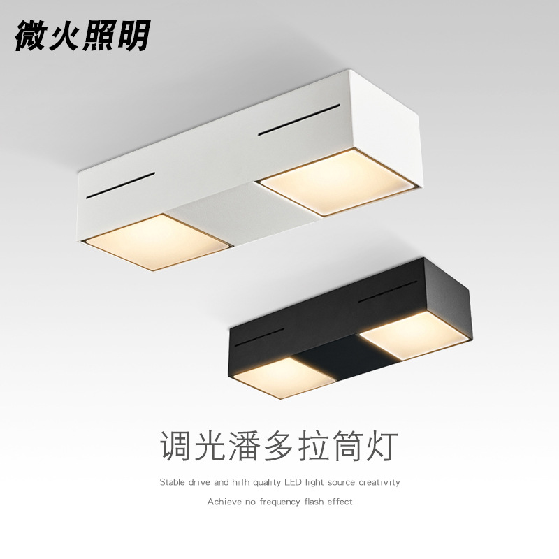 方形双头明装筒灯led吸顶客厅卧室无主灯可调光大功率盒子斗胆灯