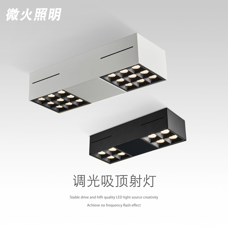 led明装射灯双头格栅灯客厅天花简约吸顶无主灯北欧可调光方盒仔